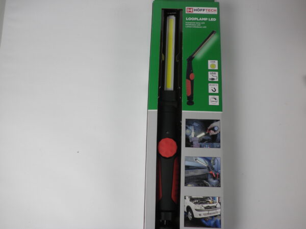 Kraftig arbejdslampe, som kan foldes og dreje, genopladelig og med magnet på foden.