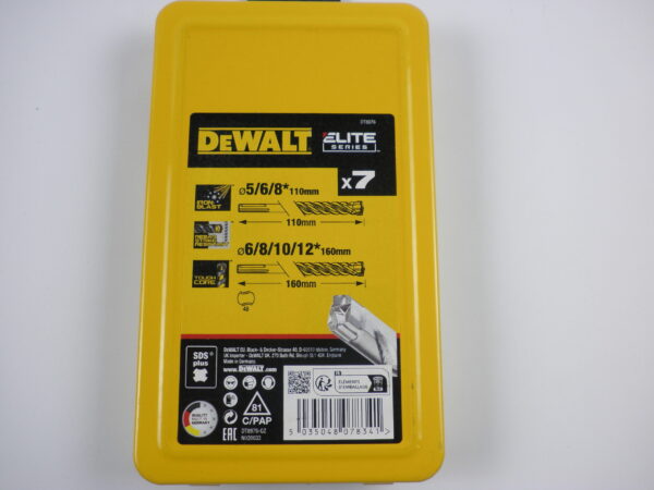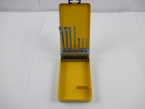 Hammerboresæt i 7 dele med SDS-Plus beslag, Ø 5/6/8×110 og Ø 6/8/10/12x160mm i praktisk metalemballage