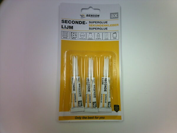 Sekund lim pakke med 3 stk limer på næsten alt.