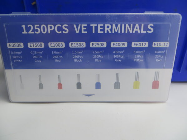 - Antal: Sættet indeholder 1250 stk. terminalrør i forskellige størrelser og farver.